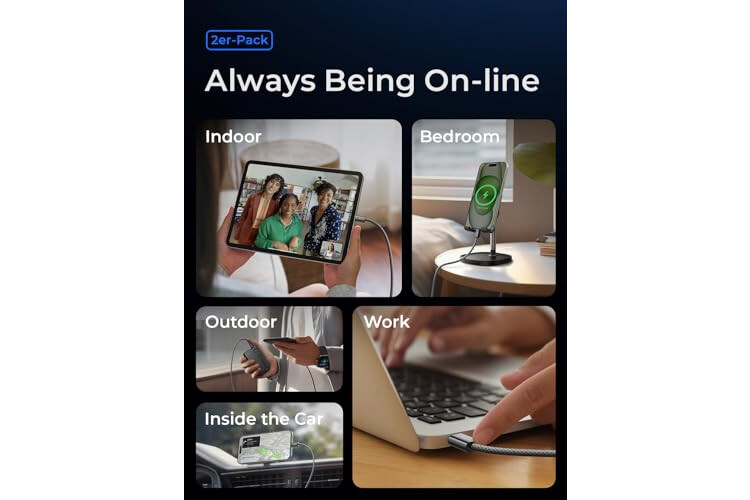 [AMAZING DURABILITY] Reinforced braided usb c cable, Lasts 30x longer than ordinary cables-proven in a laboratory environment to withstand 40,000 bends. It built-in laser welding technology, which ensure the metal part won't break. One of the toughest cables ever created, with tensile strength capable of withstanding 175 lbs