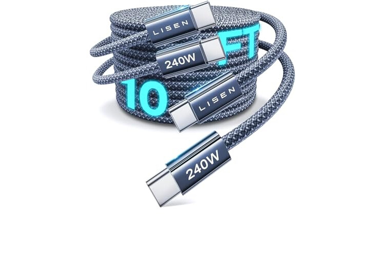 LISEN 240W Type C Charger Fast Charging Cable [10ft, 2-Pack] Long USB C Cable Fast Charging Cords 10 Foot C to C Cable Fast Charging PS/2 Charging Cable for iPhone 17/16 Series, MacBook Pro Air