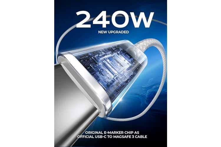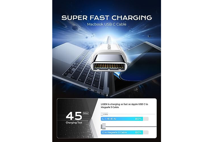 [240W SUPER FAST CHARGING] This type c to type c fast charging cable supports PD 3.0 and QC 3.0 fast charging, it charges your macbook air and pro as fast as the usb-c to magsafe 3 cable; Fast charging gives you a quick and convenient way to recharge your devices up to 80 percent in 30 minutes, and data transfer speeds up to 480Mbps (1200 songs synced per minute).