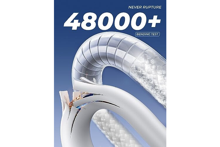 [AMAZING DURABILITY] Reinforced braided usb c cable, Lasts 30x longer than ordinary cables-proven in a laboratory environment to withstand 40,000 bends. It built-in laser welding technology, which ensure the metal part won't break. One of the toughest cables ever created, with tensile strength capable of withstanding 175 lbs