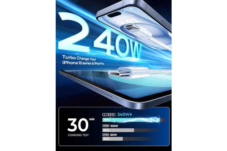 [For APPLE E-MARKER SMART CHIP] LISEN 240W super fast charging USB C cable is build in the original power delivery E-Mark chip, which supports USB PD fast charging and provides comprehensive protection to devices battery and adapters, keep you in light-speed charging and safe;