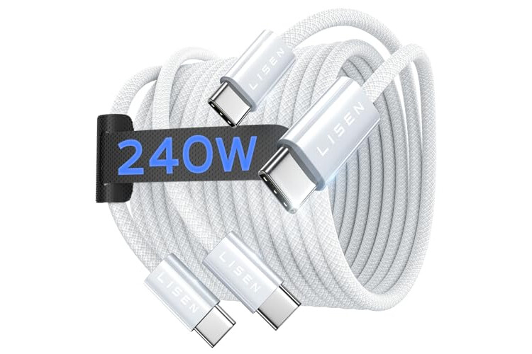 LISEN 240W USB C to USB C Cable Fast Charging Computer Security Cables Type C Charger Fast Charging Cord Type C Cable for iPhone 17 16 iPad MacBook Pro Air Samsung S25,10ft+10ft/2 Pack/White