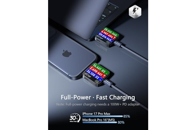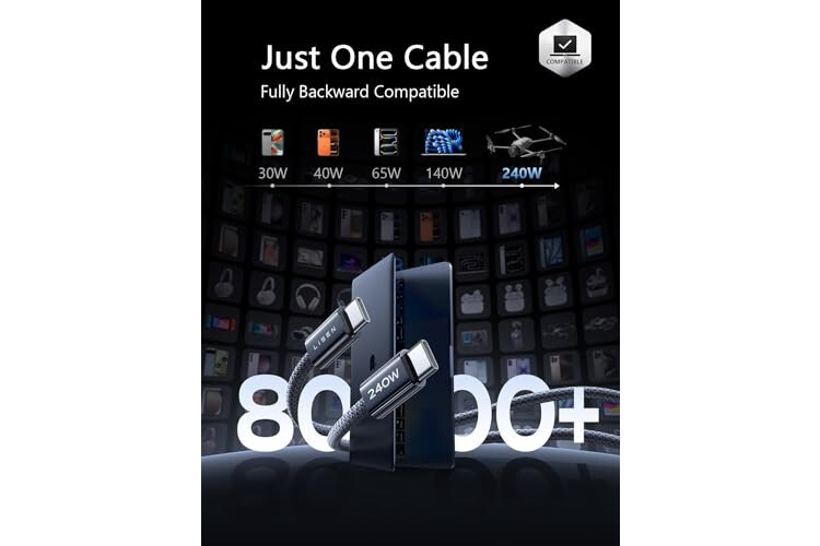 [High Power ≠ High Risk | Smarter Compatibility for Every Device]: 240W doesn't mean compromising safety—it means unmatched versatility. Thanks to PD3.1 Extended Power Range (EPR) technology, our c to c cable fast charging dynamically adjusts voltage/current to deliver each device's maximum safe power (e.g., 60W to iPads, 100W to older MacBooks, 140W to MacBook Pro M5). Other 60W/100W usb c to usb c cable can't hit full charging speed for your power-hungry devices—they're held back by their own power limits. LISEN 240W usb-c charge cable? It charges all your gear steadily, efficiently, and at full speed, with zero safety risks