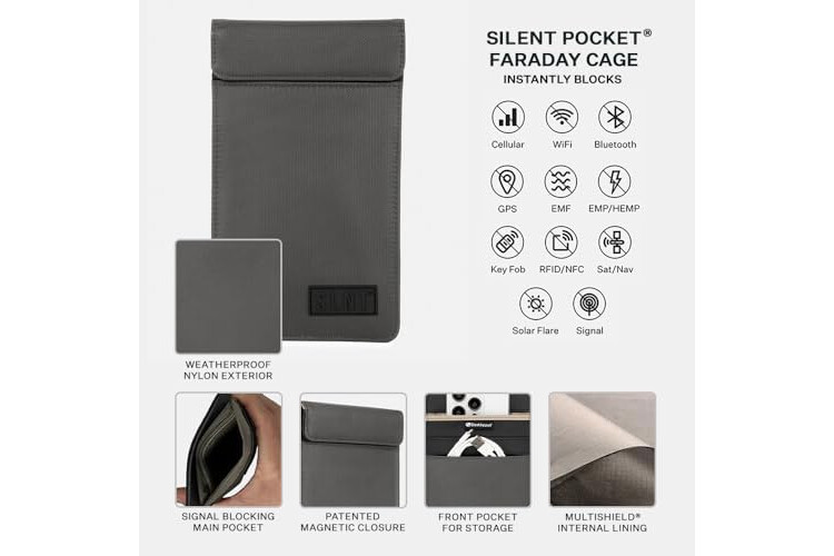 TRUSTED BRAND & TECHNOLOGY: Silent Pocket is the only patented Faraday Bag / Faraday Cage system on the market. Our proprietary anti-hacking and anti-tracking wireless shielding technology is trusted by the US Government and Global Enterprise Companies. When it comes to your safety and data security, trust the best!