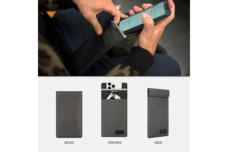 ONE SOLUTION, MANY DEVICES: Our Small faraday sleeve is perfect for smartphones, flip phones, or key fobs. Internal use dimensions: 5.5” x 3.54” (13.97x9cm) fits up to iPhone 13 mini, iPhone SE 3rd Gen, Samsung Galaxy S4 without large hard case. The Medium is great for larger smartphones. Internal use dimensions: 6.65” x 4.52” (16.89x11.5 cm) fits up to iPhone 15 Pro Max, Samsung Galaxy S24 Ultra, Google Pixel 7 Pro without la...