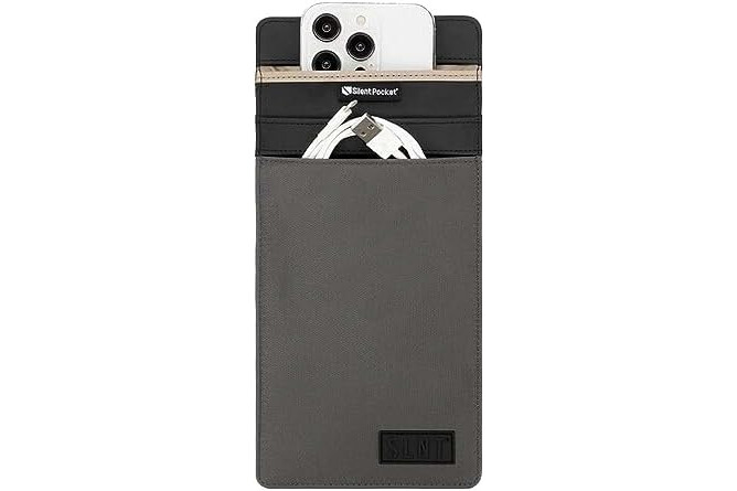 Silent Pocket SLNT Faraday Bag Smartphone Sleeve Weatherproof Nylon, Signal Blocking Device Shielding for iPhone, Galaxy, Most Phones, Privacy & Anti-Hacking (Grey Nylon, Medium)