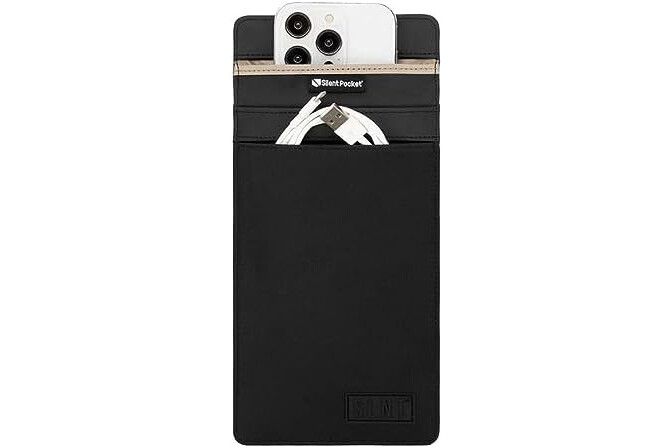Silent Pocket SLNT Faraday Bag Smartphone Sleeve Leather or Weatherproof Nylon, Signal Blocking Device Shielding for iPhone, Galaxy, Most Phones, Privacy, Anti-Hacking (Black Nylon, Medium)