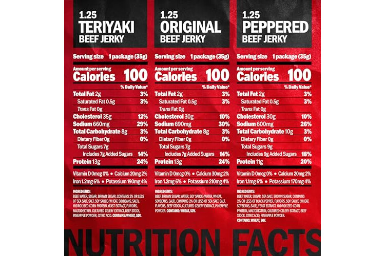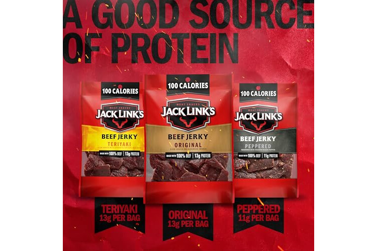 GOOD SOURCE OF PROTEIN: A diet full of protein helps keeps you satisfied and energized all day long. This beef jerky bulk pack features 15 bags of 1.25 ounce of beef jerky. 6 Original, 5 Teriyaki and 4 Peppered; perfect for stocking up
