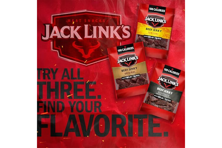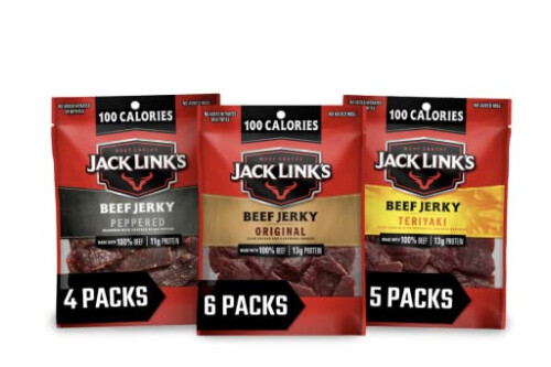 Jack Link's Beef Jerky Variety Pack – Includes Original, Teriyaki and Peppered Jerky, Bulk Protein Snack Pack, Good Source of Protein, Meat Snacks Made with 100% Beef – 1.25 Oz (Pack of 15)