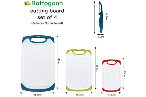 BONUS PEELER: this plastic cutting board sets come with an extra heavy-duty peeler, which would be your best kitchen helper during daily kitchen stuff.