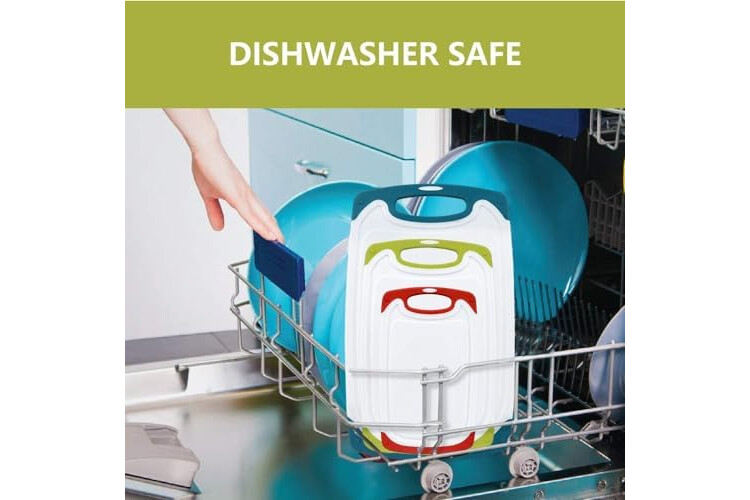 Cutting Boards for Kitchen, Plastic Chopping Board Set of 4 with Non-Slip Feet and Deep Drip Juice Groove, Easy Grip Handle, Dishwasher Safe