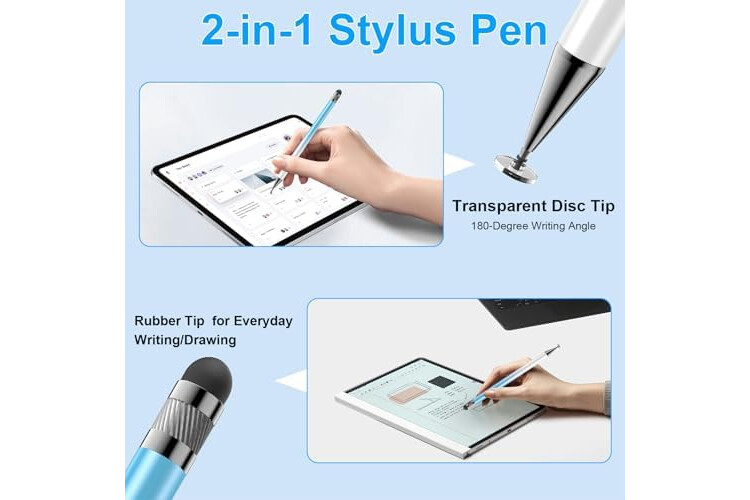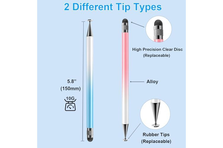 【High Accuracy & High Sensitivity】The stylus adopts a flexible transparent disc tip that can flexibly fit on the screen without leaving disconnected lines on your tablet or phone, providing better flexibility and accuracy, Allowing you to see exactly where the mark is and giving an accurate point, while the rubber tip and disc tip can give you two different touch experiences.