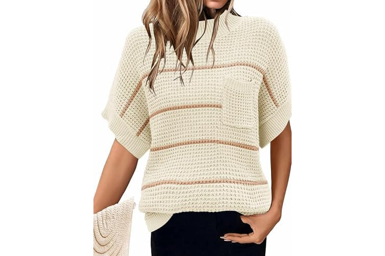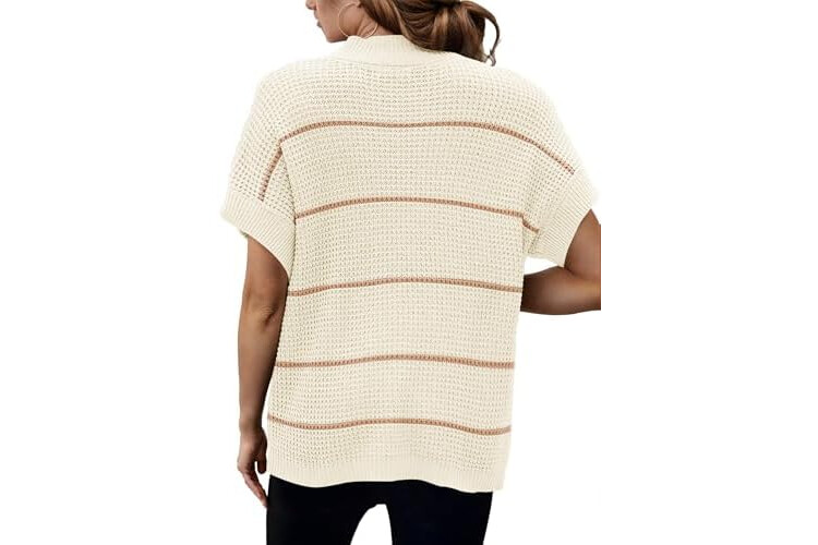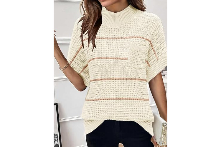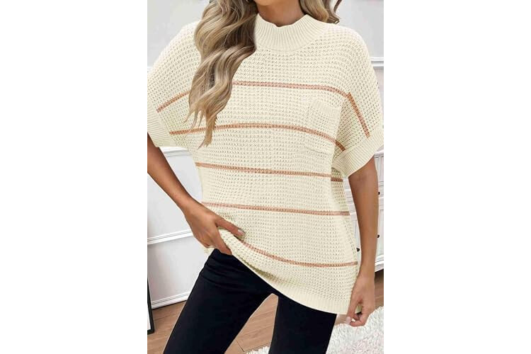 Women 2024 Sweater Vest Mock Neck Batwing Short Sleeve Oversized Ribbed Knit Tops Fall Pullover Sweater S-XXL