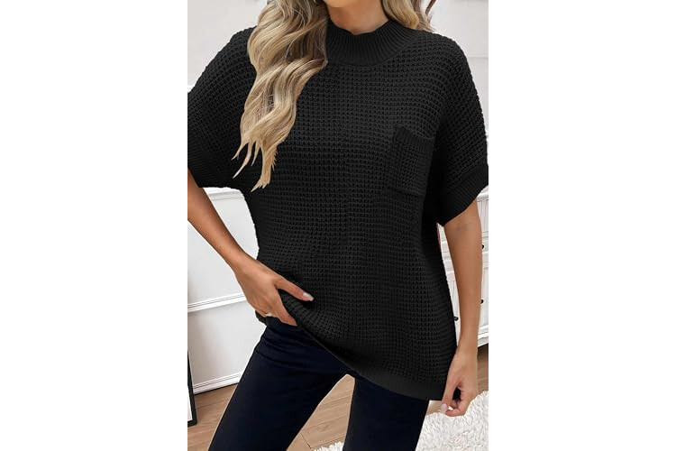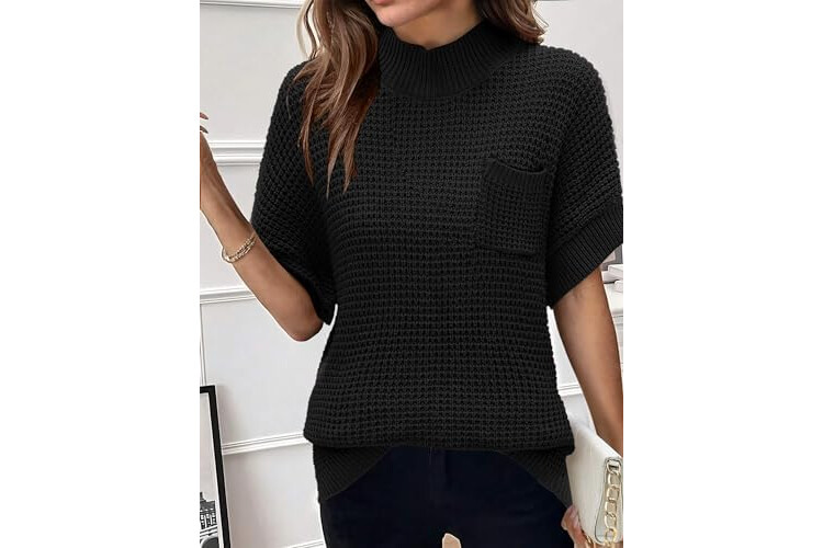 Women 2024 Sweater Vest Mock Neck Batwing Short Sleeve Oversized Ribbed Knit Tops Fall Pullover Sweater S-XXL