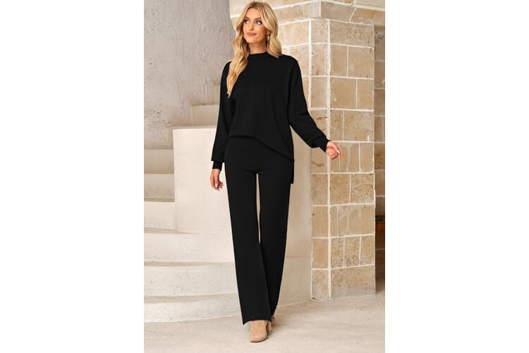 VamJump Women's 2 Piece Outfits Lounge Sets Long Sleeve High Neck Sweater Pullover Top Wide Leg Pants Sweatsuit Sets