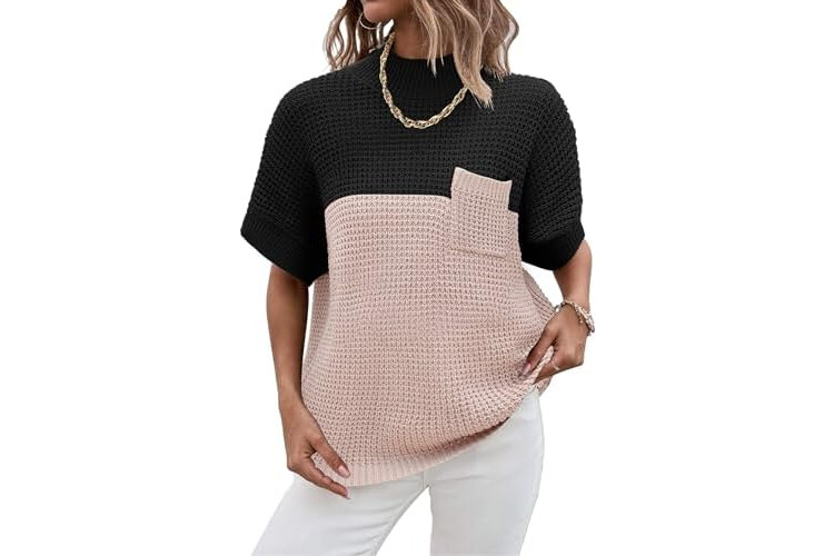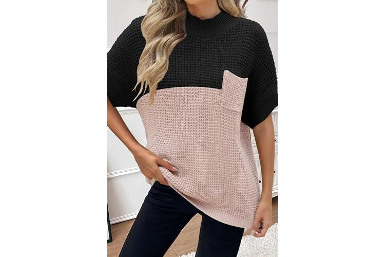 Women 2025 Sweater Vest Mock Neck Batwing Short Sleeve Oversized Ribbed Knit Tops Fall Pullover Sweater S-XXL