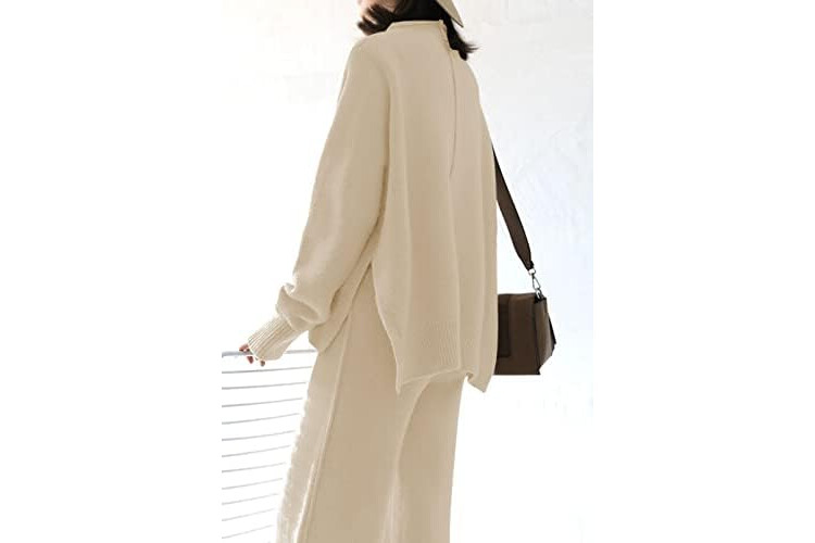 VamJump Women's 2 Piece Outfits Lounge Sets Long Sleeve High Neck Sweater Pullover Top Wide Leg Pants Sweatsuit Sets