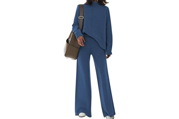 VamJump Women's 2 Piece Outfits Lounge Sets Long Sleeve High Neck Sweater Pullover Top Wide Leg Pants Sweatsuit Sets