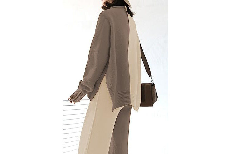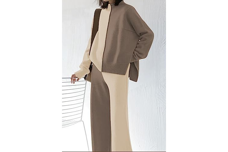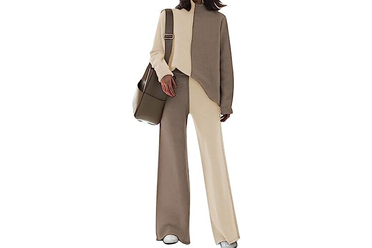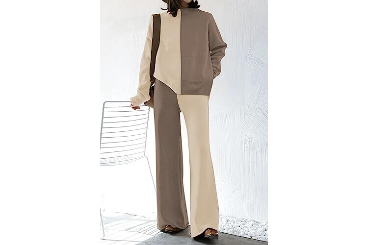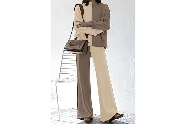VamJump Women's 2 Piece Outfits Lounge Sets Long Sleeve High Neck Sweater Pullover Top Wide Leg Pants Sweatsuit Sets