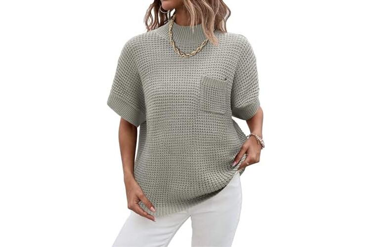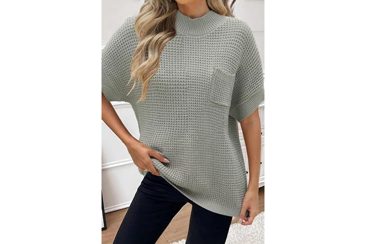Women 2026 Sweater Vest Mock Neck Batwing Short Sleeve Oversized Ribbed Knit Tops Fall Pullover Sweater S-XXL