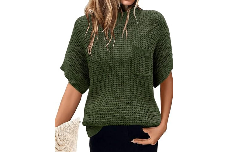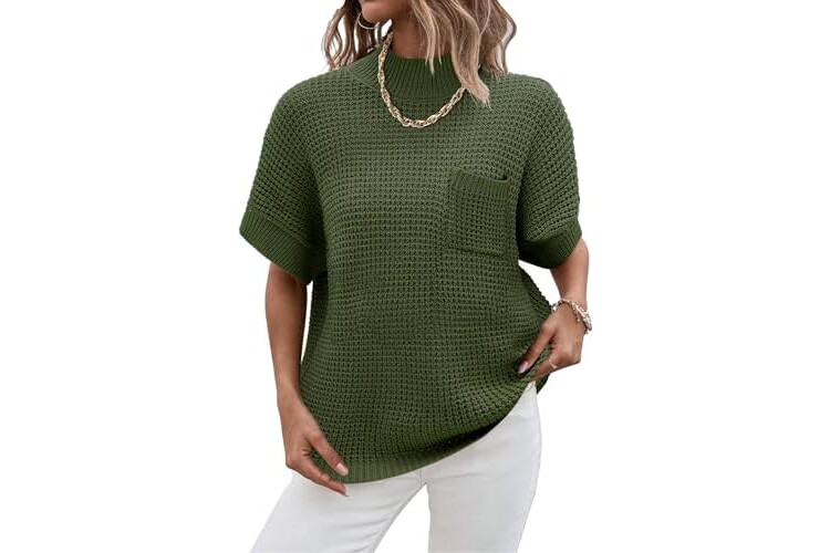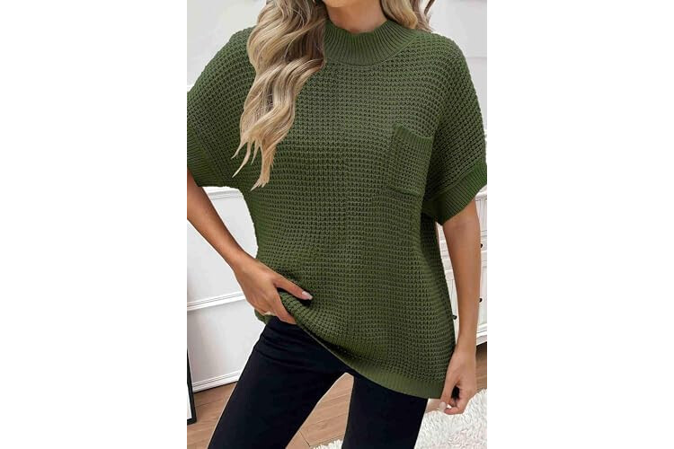 Women 2026 Sweater Vest Mock Neck Batwing Short Sleeve Oversized Ribbed Knit Tops Fall Pullover Sweater S-XXL