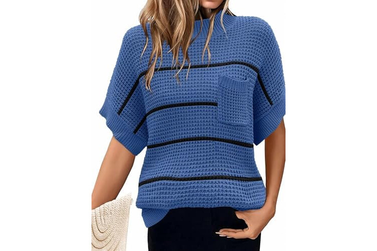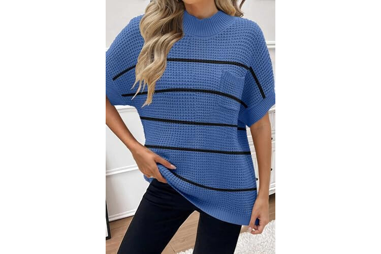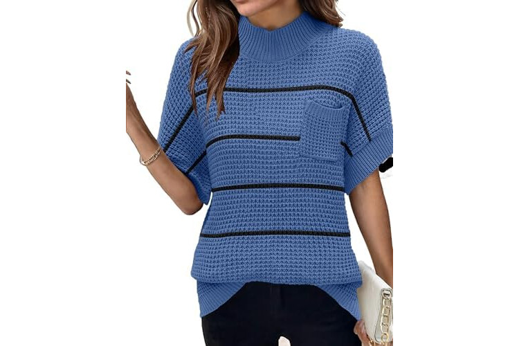 Women 2026 Sweater Vest Mock Neck Batwing Short Sleeve Oversized Ribbed Knit Tops Fall Pullover Sweater S-XXL