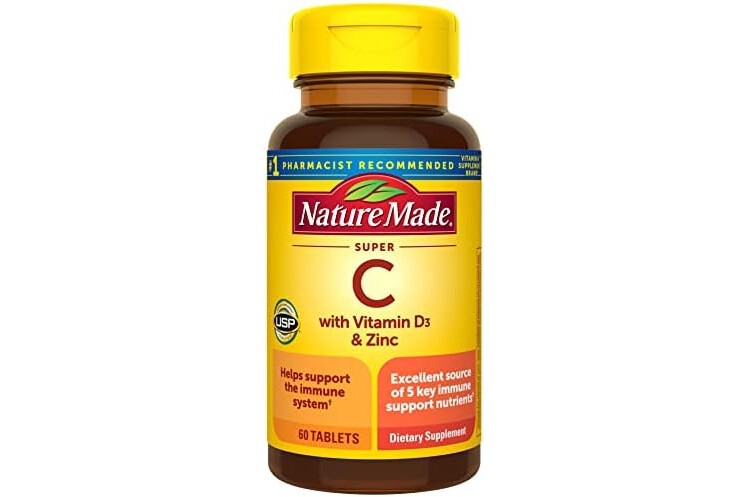 Nature Made Super C with Vitamin D3 and Zinc, Dietary Supplement for Immune Support, 60 Tablets, 60 Day Supply