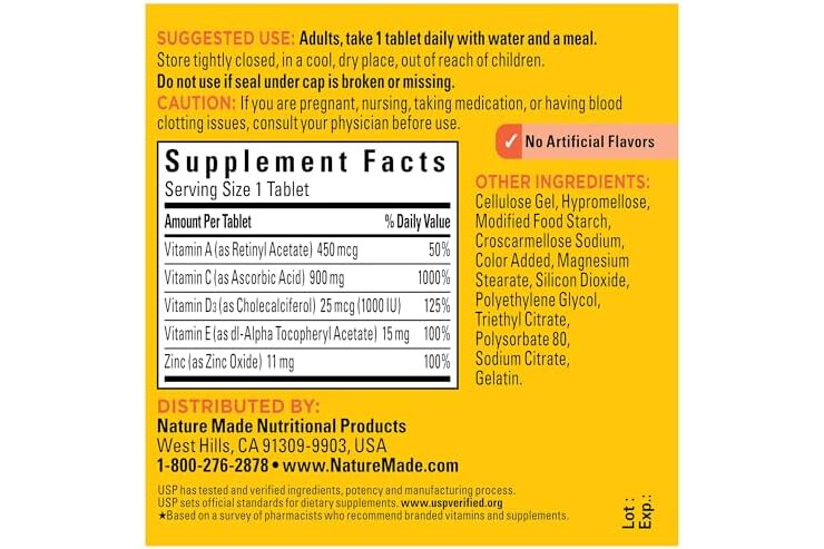 Nature Made Super C with Vitamin D3 and Zinc tablets contain no artificial flavors