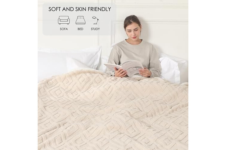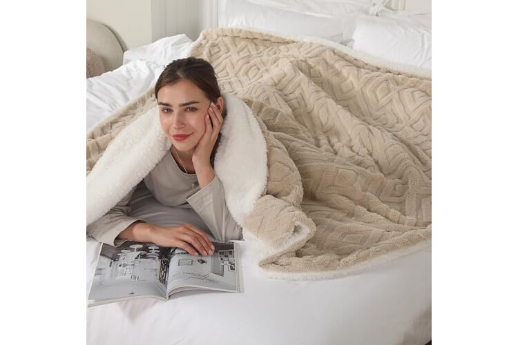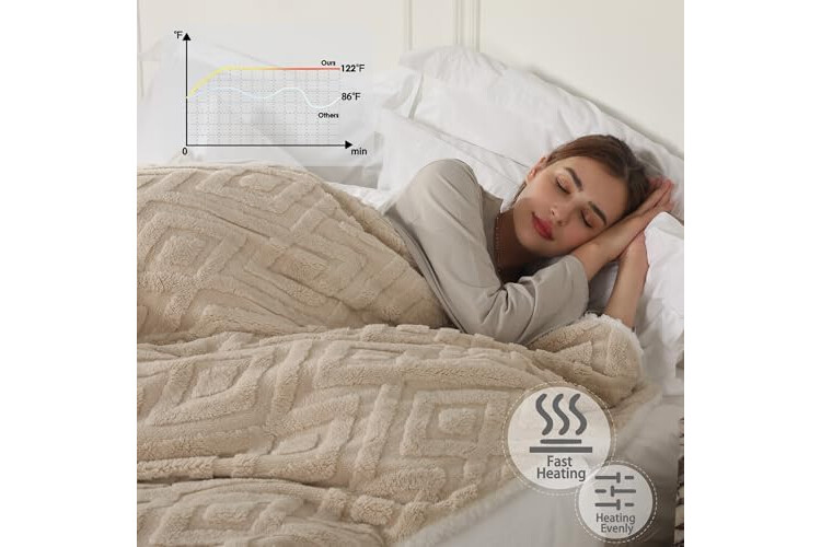 Warm and Lightweight: The jacquard shaggy sherpa heated blanket maintains the ideal balance between weight and warmth. Enjoy being cuddled up by this soft and cozy blanket whenever you're ready to snuggle up
