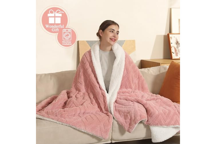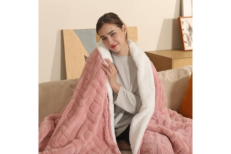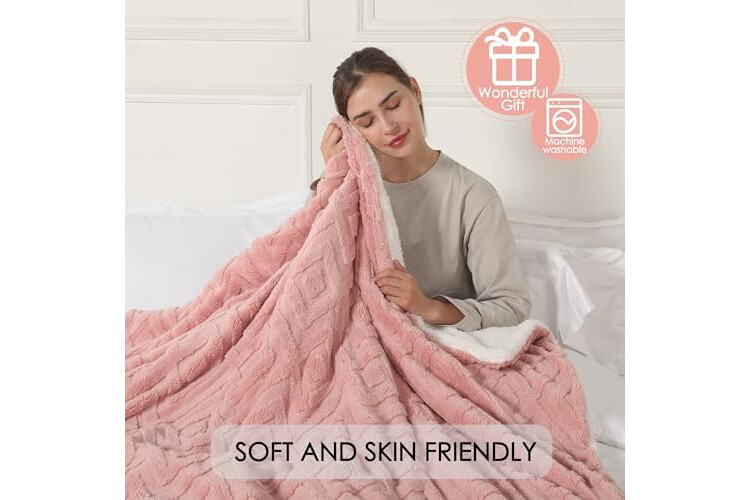 Heating Blanket Twin Size Extra-Thick and Warm Electric Blanket with 10 Hour Auto Off & 5 Heating Levels, 3D Pattern Design and Overheating Protection, Baby Pink