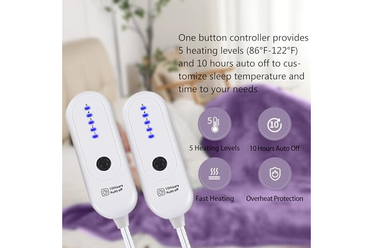 Heated Blanket Electric King Size, Machine Washable Plush Heated Blanket with Dual Control 5 Heating Levels & 10 Hours Auto Off, Fast Heating & Overheat Protection, 100" x 90", Lavender Violet