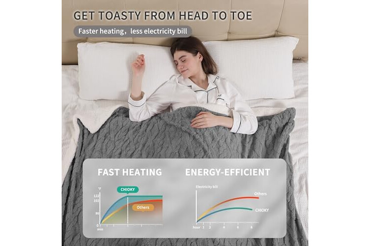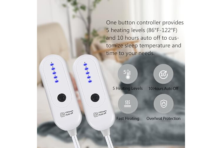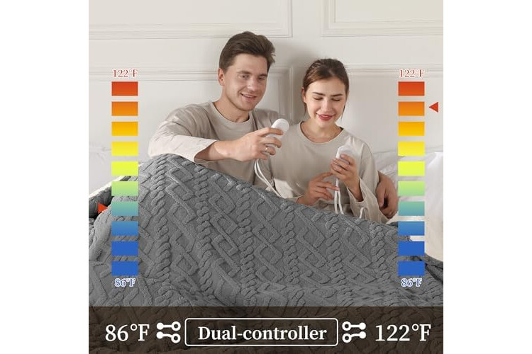 Heated Blanket Queen Size, Queen Size Electric Blanket Dual Control with 5 Heating Levels & 10 Hours Auto Off, Fast Heating with Overheat Protection, 3D Pattern Design, 100" x 90", Gray