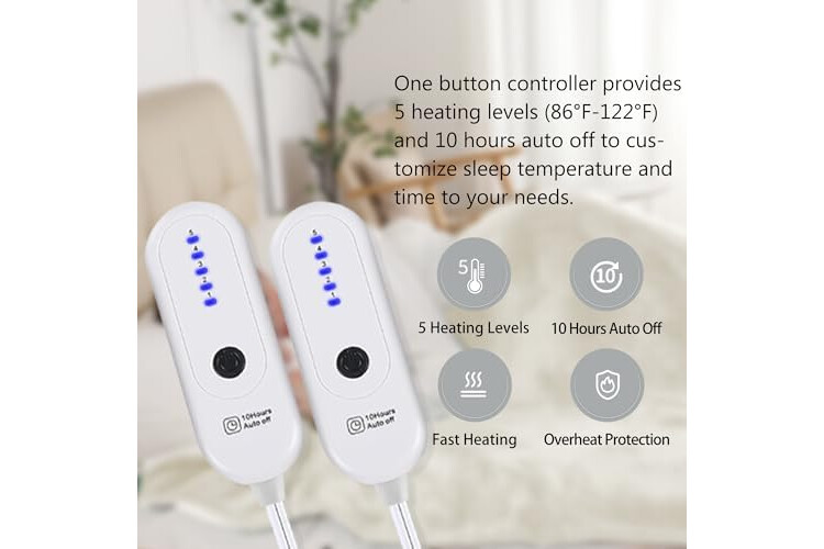 Electric Blanket Queen Size, Heated Blanket with 5 Heat Settings & 10 Time Settings, Super Soft Cozy Sherpa Blanket with Fast Heating for Home Office Use, 84 x 90 Inches, White