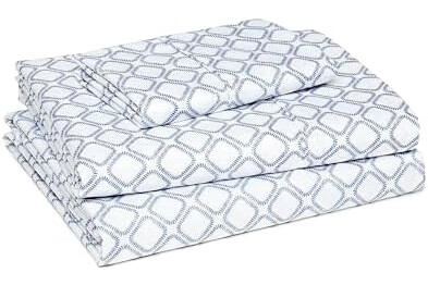 Amazon Basics Lightweight Super Soft Easy Care Wrinkle Free Microfiber 3 Piece Bed Sheet Set with 14-Inch Deep Pockets, Twin, Aqua Squre Grid, Grid, Kids, Men & Women Bedding