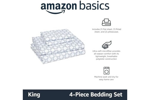 Amazon Basics Lightweight Microfiber 4-Piece Bed Sheet Set, Aqua, Printed, King