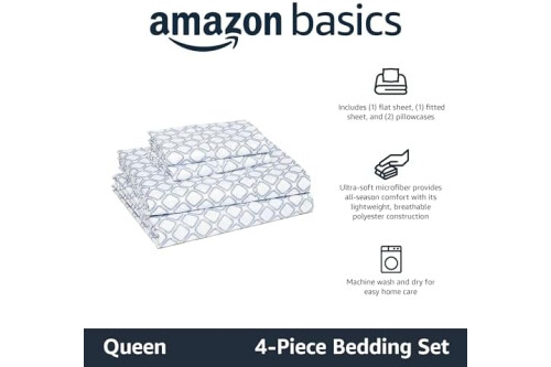 Amazon Basics Lightweight Microfiber 4-Piece Bed Sheet Set, Aqua, Printed, Queen