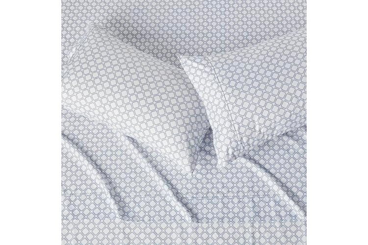 • Bed sheet set in an Aqua print creates a cozy sleeping space