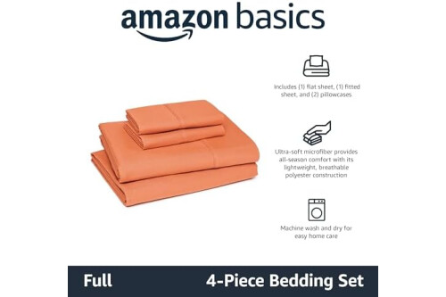 Amazon Basics Lightweight Microfiber 4-Piece Bed Sheet Set, Brick, Solid, Full