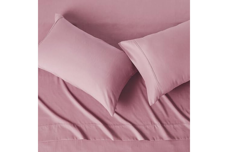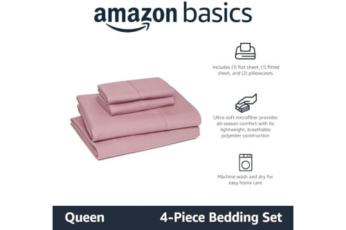 Amazon Basics Lightweight Microfiber 4-Piece Bed Sheet Set, Rose, Solid, Queen