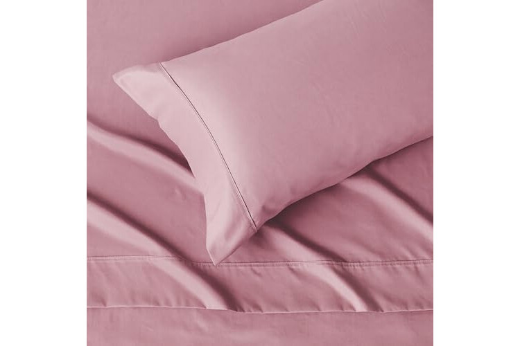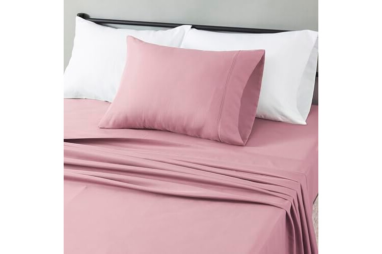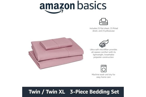 Amazon Basics Lightweight Microfiber 3-Piece Bed Sheet Set, Rose, Solid, Twin XL