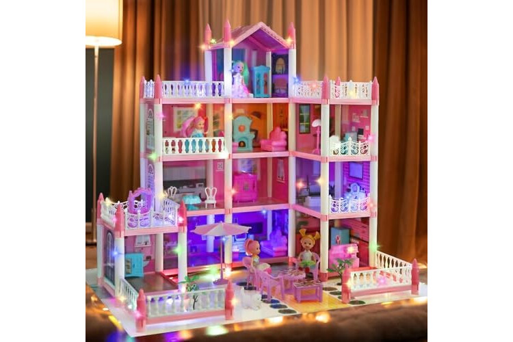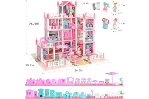Doll House, Dream Dollhouse for Girls Pretend-Play DIY Dollhouse Kit - 4-Story 11 Rooms Playhouse with 4 Dolls Toy Figures, Furniture and Accessories Set Gift Toy for Kids Ages 3 4 5 6 7 8+
