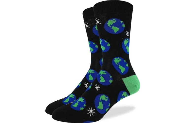Good Luck Sock Men's Planet Earth Socks, Adult, Shoe Size 7-12
