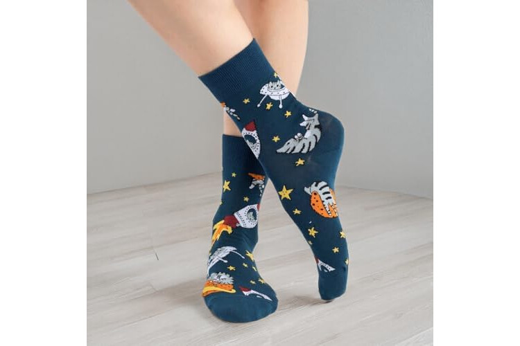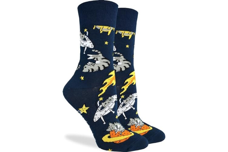 Good Luck Sock Women's Space Cat Socks, Adult, Shoe Size 5-9