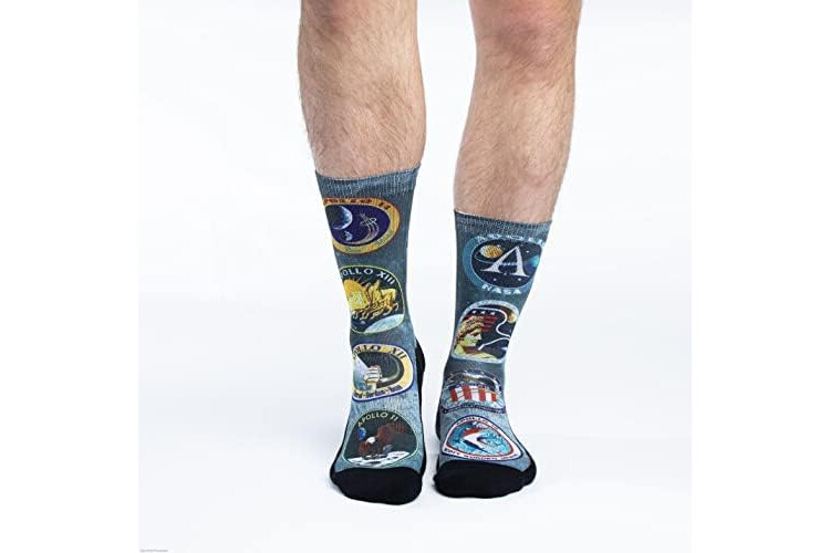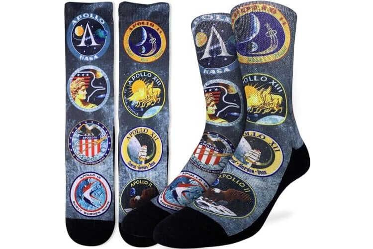Good Luck Sock Men's Apollo Mission Patches Socks, Adult, Shoe Size 8-13
