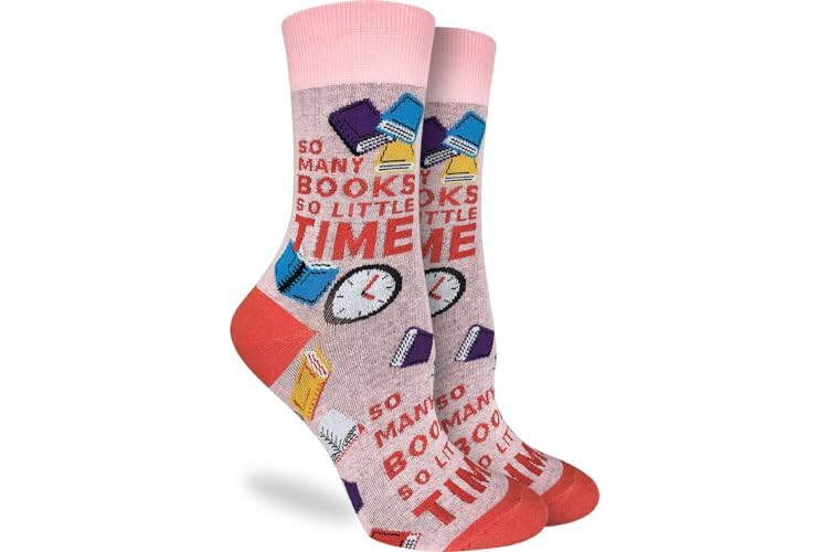 Good Luck Sock Women's So Many Books So Little Time Socks, Pink, Adult, Shoe Size 5-9