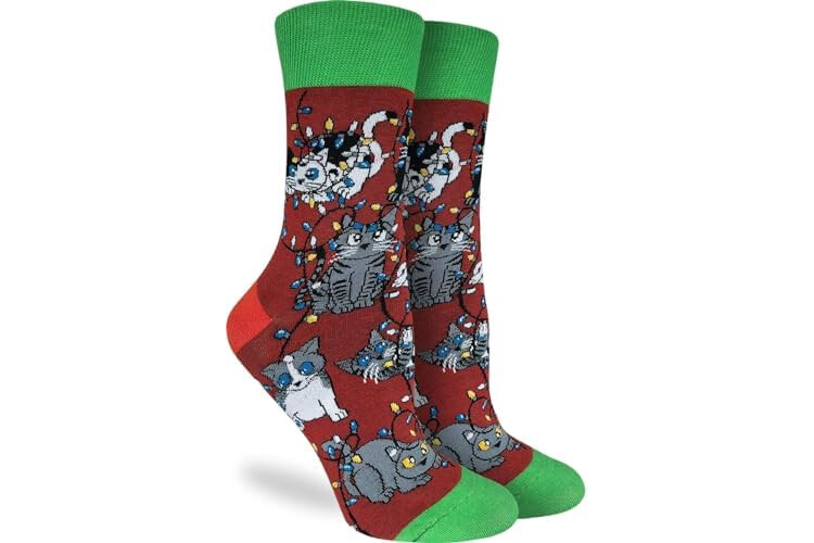 Good Luck Sock Women's Christmas Light Cats Socks, Adult, Shoe Size 5-9