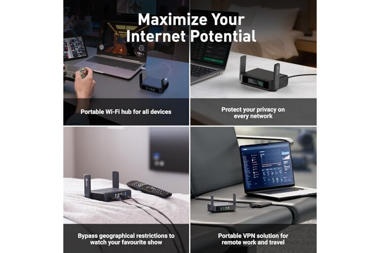 【NETWORK CONTROL WITH TOUCHSCREEN SIMPLICITY】Slate 7’s touchscreen interface lets you scan QR codes for quick Wi-Fi, monitor speed in real time, toggle VPN on/off, and switch providers directly on the display. Color-coded indicators provide instant network status updates for Ethernet, Tethering, Repeater, and Cellular modes, offering a seamless, user-friendly experience.