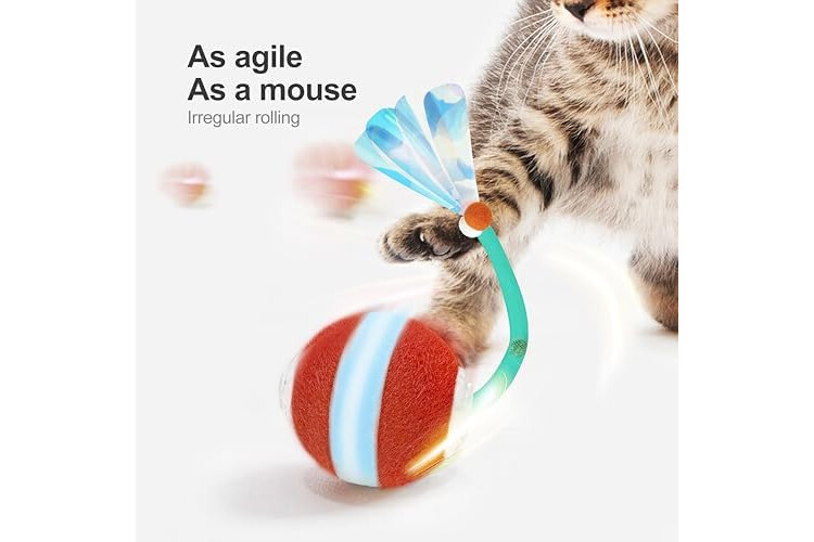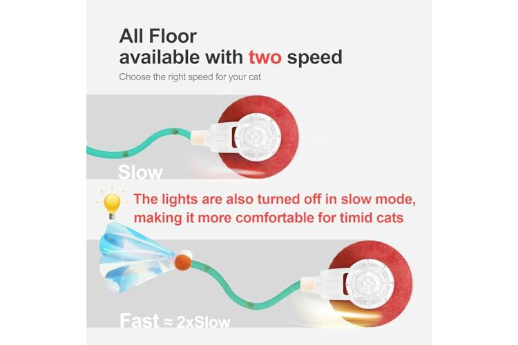 【Two Interaction Modes】Press and hold the button for 1 second to activate the slow mode (the red light flashes and then turns off). It is suitable for timid, less active, or older cats. We have specifically turned off the light for these cats to avoid scaring or harming their eyes. Press the button again briefly to switch to the fast mode (the blue light is on continuously). This mode ...