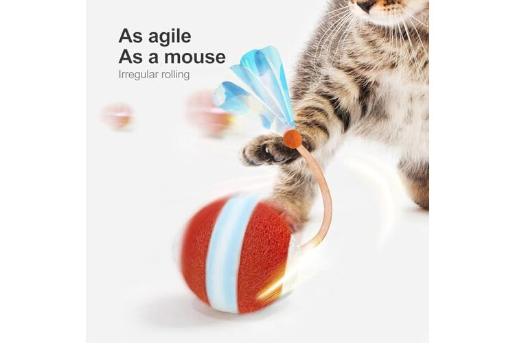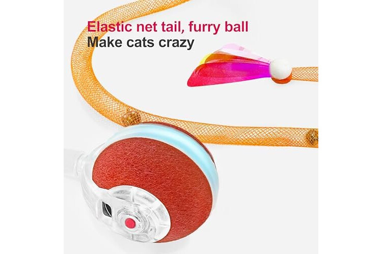 Interactive Cat Toys for Indoor Cats,The 3rd Generation Agile Moving Cat Ball with Elastic Mesh Tail,Automatic Kitten Toys for Bored Indoor Adult Cats,Motion Activated (Orange)
