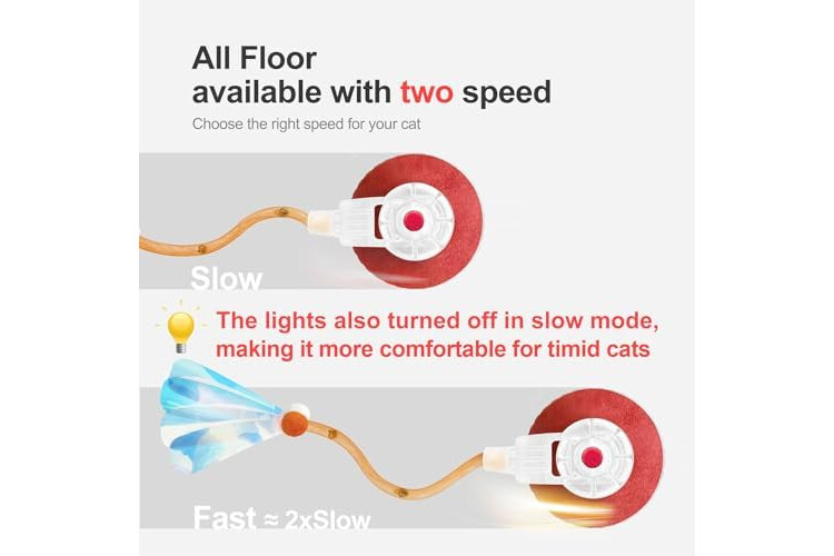 【Two Interaction Modes】Press and hold the button for 1 second to activate the slow mode (the red light flashes and then turns off). It is suitable for timid, less active, or older cats. We have specifically turned off the light for these cats to avoid scaring or harming their eyes. Press the button again briefly to switch to the fast mode (the blue light is on continuously). This mode ...